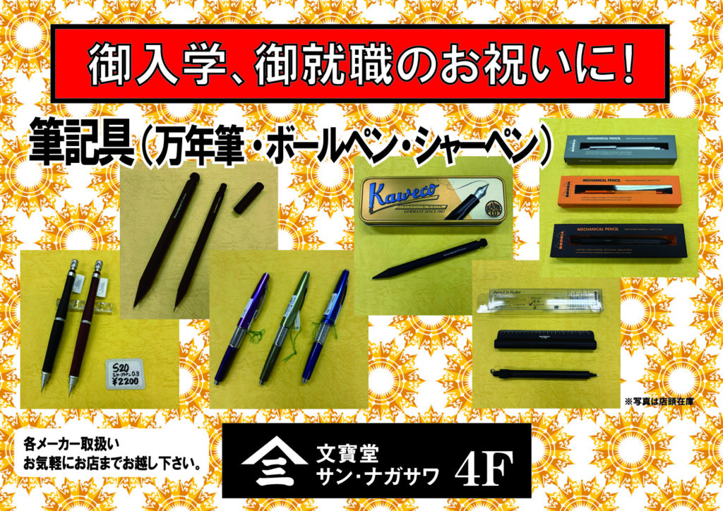 文寶堂/サン・ナガサワ[4F/日本画材・お香・和雑貨/文具雑貨] 御入学、御就職のお祝いに、筆記用具は如何でしょう