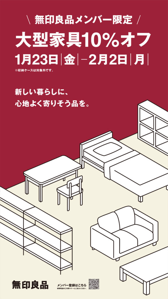無印良品メンバー様は大型家具を10%offでお買い求めいただける大変お得な期間です。
