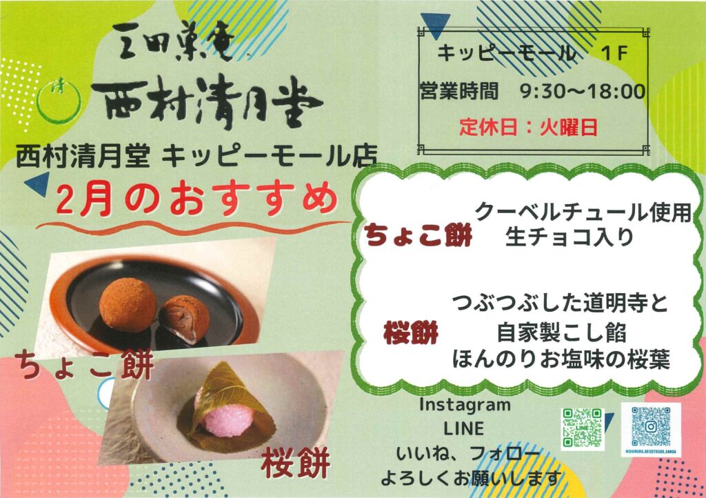三田菓庵 西村清月堂[1F/和菓子] 2月のおすすめ